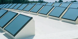 External safety screens provide OSHA fall protection for flat roof, domed commercial skylights. The screen system provides fall protection without damaging your skylight.